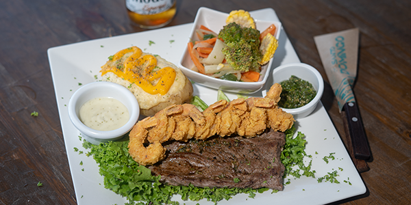 Acompañantes: Ensalada verde, arroz blanco o rice and bean y tajadas o tostones de plátano verde o papa al horno.